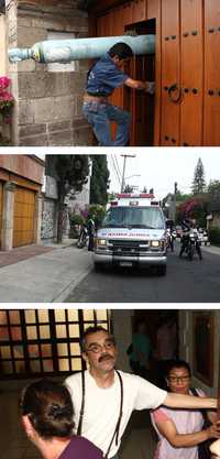 A las 9 de la mañana llegó una camioneta con cilindros de oxígeno, así como una máquina generadora del mismo gas, que fueron introducidos a la casa del escritor.