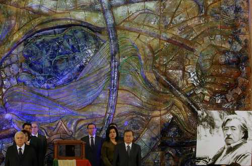 Al finalizar los discursos sus hijos, funcionarios y el embajador de Japón en México, Suichiro Megata, realizaron las primeras guardias de honor.