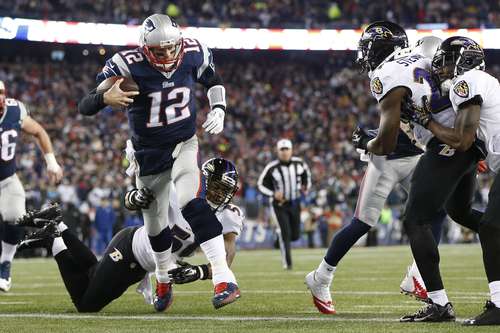 Tom Brady guió la victoria de Nueva Inglaterra y vino de menos a más para arrebatar el partido a los Cuervos de Baltimore, con un Joe Flacco que lanzó un disparo a Torrey Smith, pero Duron Harmon lo interceptó antes de que expirará el reloj, para que los Patriotas ganaran 35-31 y el boleto para disputar el título de la Conferencia Americana (AFC).