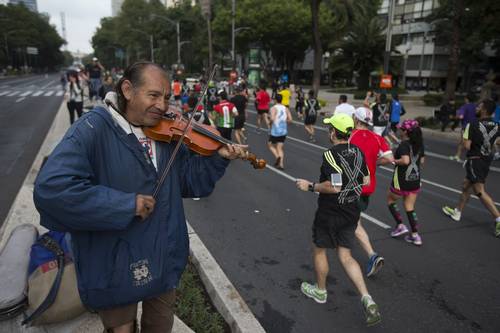 En Paseo de la Reforma algunas personas escuchaban a los grupos musicales –distintivos de esta ocasión en que se disputó la medalla de la “X” de México– y aplaudían al paso del río de corredores, al que impulsaban con gritos de “Vamos... tú puedes” o “échele ganas, campeón”, lo mismo que en la zona de Polanco por el plateado Museo Soumaya, y en Insurgentes sur, rumbo a Ciudad Universitaria.
