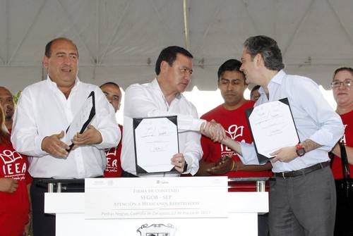 Osorio Chong vino a esta ciudad para poner en marcha un programa con los estados fronterizos para garantizar el adecuado recibimiento de mexicanos repatriados, y en el caso de los menores de edad, el acceso a educación.