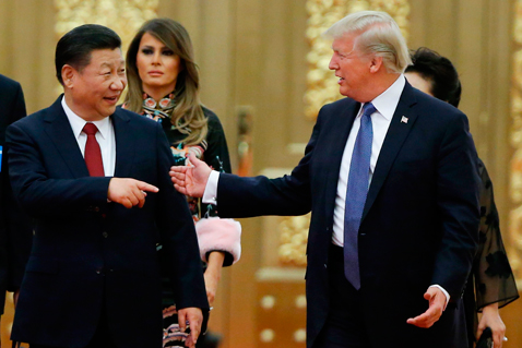 El presidente Xi Jinping recibe al mandatario estadunidense, Donald Trump, en el Gran Palacio del Pueblo para una cena oficial. El magnate apremió a su contraparte a involucrarse plenamente para resolver la crisis con Corea del Norte, e insistió en la necesidad de