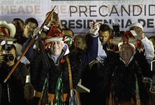 Las autoridades municipales lo vistieron con las ropas tradicionales y le entregaron el bastón de mando que, expresó el precandidato priísta, “me acompañará desde San Juan Chamula hasta el triunfo el 1º de julio”.