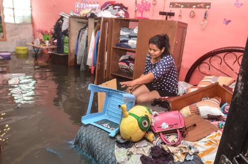 La CAEM informó ayer que las lluvias del día anterior inundaron 137 viviendas en los municipios de Nezahualcóyotl y Chimalhuacán, así como una decena en Chicoloapan, donde se desbordó el canal de aguas negras Río Manzano.