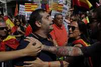 ▲ Insultos entre manifestantes por la unión de España e independentistas, ayer en Barcelona.