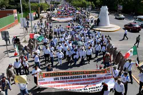 Recordó que miles de trabajadores del sector salud estatal cumplen este lunes un mes de paro de brazos caídos para exigir el pago de 884 millones de pesos que les adeuda el gobierno estatal por diversas prestaciones. Responsabilizó de “los saqueos” y el quebranto financiero en ese sector al ex titular de la dependencia Francisco Ortega Farrera; al ex administrador Jairo César Guillén Ramírez y al ex dirigente sindical José Luis Díaz Selva.