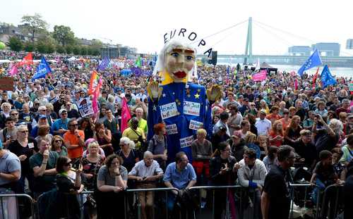 En Alemania unas 150 mil personas marcharon en favor de la unificación europea. Banderas del bloque ondearon en las calles de Berlín, Colonia, Leipzig, Fráncfort, Munich y Hamburgo.