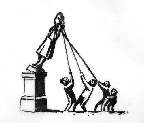 ▲ Ilustración del célebre artista urbano Banksy, difundida en su cuenta de Instagram, que alude a la estatua del esclavista Edward Colston, derribada en Bristol, con la descripción: “Aquí hay una idea que satisface tanto a los que extrañan esta efigie como a quienes no”.Foto tomada de la red social