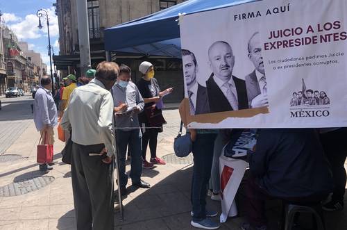 Este domingo continuó en diversas entidades la recolección de firmas para exigir que se juzgue por actos de corrupción a los ex presidentes Carlos Salinas de Gortari, Felipe Calderón Hinojosa y Enrique Peña Nieto.