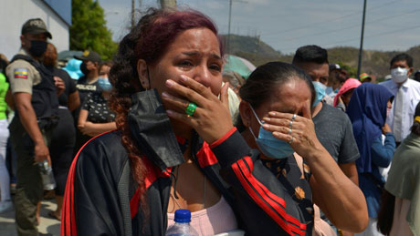 ▲ El gobierno de Guillermo Lasso desplegó 3 mil 600 efectivos de la policía nacional y de las fuerzas armadas en todo el sistema carcelario, luego del enfrentamiento del martes con armas de fuego en la Penitenciaría Litoral, que alberga una población de 8 mil 500 reos, 60 por ciento más del cupo. La medida forma parte del estado de excepción decretado por el mandatario para restablecer el orden tras el amotinamiento. En la imagen, familiares esperan noticias afuera de la cárcel de Guayaquil. Foto Afp. / Agencias