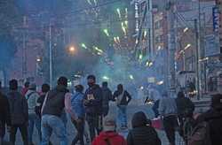 ▲ Vecinos de un barrio de La Paz levantaron ayer barricadas para impedir que sus calles se conviertan en un campo de batalla entre cocaleros y policías; sin embargo, por la tarde estallaron de nuevo los enfrentamientos. Un grupo de cultivadores de hoja de coca exige el cierre de un mercado que consideran ilegal y acusan al gobierno de respaldar al sindicato rival que lo opera. Este conflicto entró ayer en su tercera semana. Foto Ap