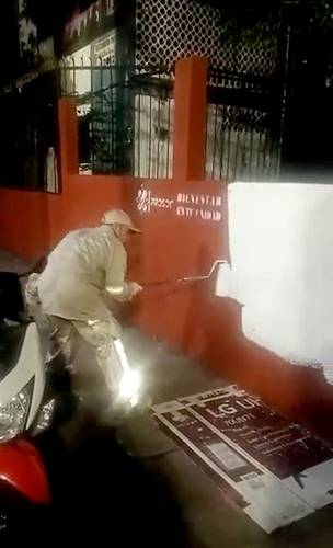 ▲ Horas después de que la Procuraduría Social y la Autoridad del Centro Histórico decoraron la fachada de La Fortaleza, personal de la alcaldía Cuauhtémoc la puso de blanco, por lo que se hará una denuncia penal y otra administrativa.Foto La Jornada