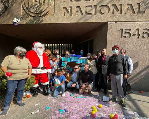 ▲ Frente a la sede del Partido Acción Nacional, vecinos exigieron justicia por las víctimas del cártel inmobiliario de la alcaldía Benito Juárez por medio de una antiposada, en la cual rompieron una piñata en forma de edificio, llena de billetes falsos, juguetes y confeti, haciendo alusión a la riqueza ilegal de la que se han beneficiado los panistas. Foto La Jornada
