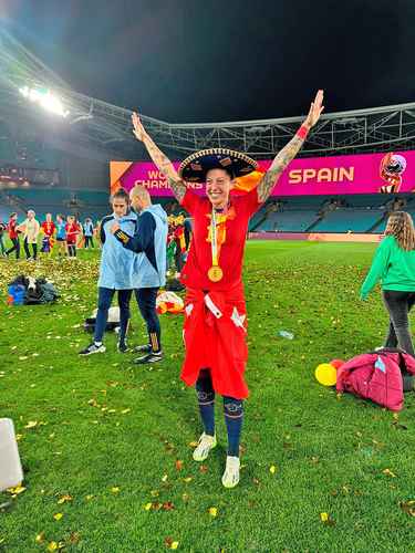 Jennifer Hermoso sonríe envuelta en la euforia mientras alza la Copa del Mundo Femenil y posa con un sombrero de charro. La delantera se ha coronado campeona con España, pero se aferra a destacar el lazo que la une con México. Como ariete del Pachuca es la única futbolista, hombre o mujer, que juega en la Liga Mx mientras alcanza la cima con un título del orbe.