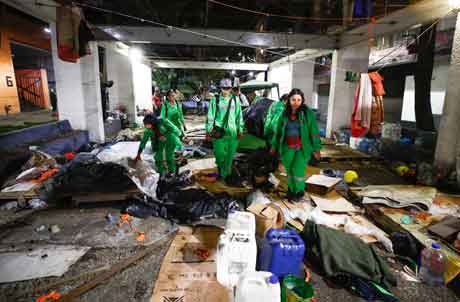 ▲ Agentes del INM, con apoyo de la Guardia Nacional y de la policía capitalina, retiraron anoche a cientos de extranjeros, la mayoría de Venezuela y Haití, quienes acampaban en la plaza ubicada en la colonia Juárez, alcaldía Cuauhtémoc; en la operación fueron usados 11 camiones. Muchos aceptaron el traslado, mientras otros se dispersaron con sus escasas pertenencias. Al cierre de edición, las autoridades no habían indicado el destino de los migrantes. Foto Víctor Camacho. / Jessica Xantomila, Jared Laureles y Emir Olivares