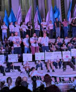 ▲ Familiares de los 49 niños y niñas fallecidos, así como sobrevivientes en el incendio ocurrido el 5 de junio de 2009 en Hermosillo, Sonora, se movilizaron ayer para exigir que el gobierno federal y el IMSS les otorguen atención médica de primer nivel. Las ahora jóvenes víctimas expusieron los efectos de las quemaduras e inhalación de humo que sufrieron. Unas 3 mil personas participaron en la marcha de las ruinas de la estancia a las escalinatas de la Universidad de Sonora. Foto C. Gómez. / Cristina Gómez Lima