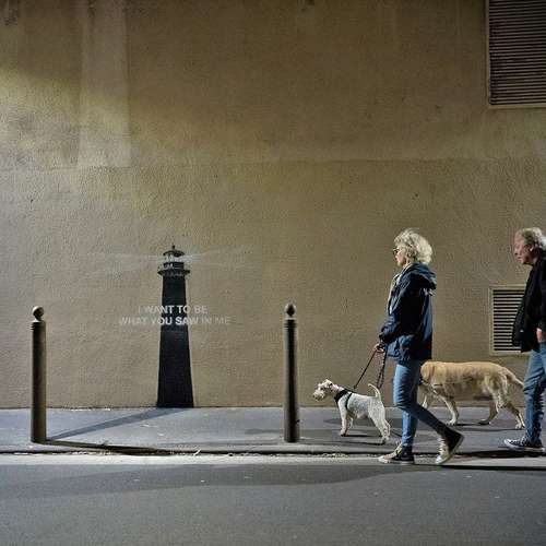 La obra más reciente de Banksy se reveló y los investigadores de Internet no tardaron en saber su ubicación. El grafiti en blanco y negro representa un faro con luz que irradia desde su torre, con la leyenda: “Quiero ser lo que viste en mí”.