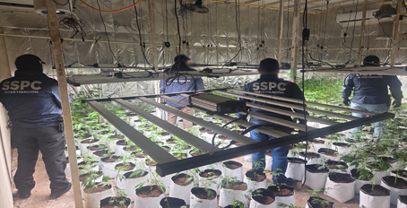 ▲ Las secretarías de Seguridad federal y capitalina detuvieron en la colonia Centro a Sergio Cano, alias D3, cabecilla de La familia michoacana, y tres integrantes más, quienes operaban en alcaldías de la Ciudad de México, además de los municipios mexiquenses de Chimalhuacán y Nezahualcóyotl. También se detectó presencia en Guerrero y Sinaloa, con alcances en Costa Rica y Guatemala. La célula criminal se dedicaba al desarrollo de invernaderos, producción, almacenamiento y venta de la yerba. Foto SSPC. Kevin Ruiz