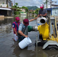 ▲ Inundaciones de hasta metro y medio provocó la tormenta que comenzó alrededor de las 2 de la madrugada de ayer en el puerto guerrerense. La lluvia torrencial que duró casi tres horas anegó vialidades principales, calles alternas y unidades habitacionales, principalmente en la zona Diamante. Foto La Jornada / H. Briseño,