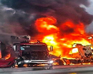 ▲ Presuntos integrantes del crimen organizado impidieron el paso en autopistas y prendieron fuego al menos a 39 vehículos en 12 municipios de la entidad la madrugada de ayer. Efectivos del Ejército y Guardia Nacional restablecieron el tránsito hasta 10 horas después en algunos tramos. Foto La Jornada. Alfredo Valadez