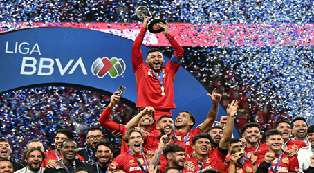 ▲ Luego de una cardiaca serie de nueve tiros, los Diablos Rojos consiguieron su estrella 12 y el bicampeonato, con el penal defi nitivo cobrado por Alexis Vega en el estadio Nemesio Diez. Tigres se fue al frente con gol de Fernando Gorriarán al minuto 14 (global 2-0), pero los escarlatas empataron con tantos de Helinho, al 40, y de Paulinho, al 52. Foto Afp. Alberto Aceves, Enviado