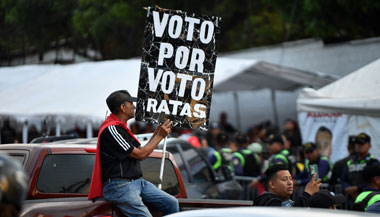 ▲ Simpatizantes del partido gobernante Libre protestan cerca del lugar donde se resguardan las boletas. Foto Afp / Xinhua,