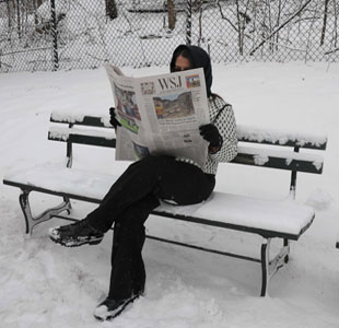 ▲ Una fuerte nevada llevó a las autoridades de Nueva York y Nueva Jersey a declarar emergencia meteorológica. A media mañana se habían cancelado o retrasado más de 14 mil 400 vuelos nacionales y 2 mil 100 internacionales que tenían previsto salir o aterrizar en Estados Unidos. En la imagen, una joven en Central Park. Foto Afp / Reuters