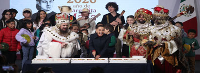 ▲ En la conferencia matutina, la presidenta Claudia Sheinbaum convivió con niños, quienes partieron la rosca de Día de Reyes y recibieron juguetes. Una de las pequeñas preguntó la razón de prohibir los dulces en las escuelas, a lo que la mandataria respondió que el consumo en exceso de golosinas puede causar problemas de salud, por lo cual deben ser suministradas en casa, con supervisión de sus padres. Foto Yazmín Ortega Cortés / Néstor Jiménez y Alonso Urrutia