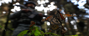 ◀ ▲ Como resultado de los trabajos de recuperación y restauración del Área Natural Protegida del ex lago de Texcoco, donde se pretendía construir el Nuevo Aeropuerto Internacional de México, se detectó la presencia de pelícanos blancos, lo cual no ocurría desde hace 15 años. En tanto, en Michoacán, en la Reserva de la Biosfera Mariposa Monarca se cuida que los visitantes disfruten del lugar sin perturbar el equilibrio del santuario, una opción ecoturística que beneficia a la comunidad. Aquí, 300 integrantes de la Guardia Nacional vigilan para evitar el robo de flora y fauna, así como la tala ilegal. Fotos La Jornada y Jorge Ángel Pablo