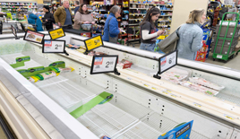 ◀ Se emitió una alerta para 160 millones de personas este fin de semana en EU. La CFE afirmó que cuenta con capacidad para enfrentar la eventual falta de gas natural en el norte de México. En la imagen, compras de pánico en Arlington, Virginia. Foto Afp