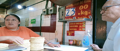 ▲ En tortillerías del Centro Histórico y de la alcaldía Iztapalapa, el precio del alimento alcanzó ya entre 23 y 24 pesos, y en algunos lugares hasta 28. Los comerciantes argumentan que se debe al alza en el costo de los insumos, como gas, luz y renta. Foto E. Bravo / Elba Mónica Bravo