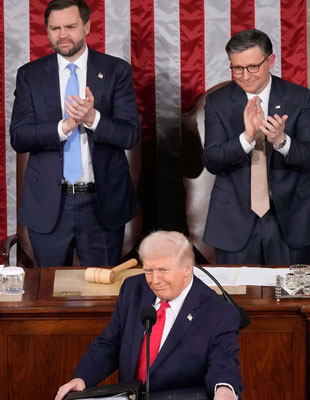 ▲ En su informe sobre el estado de la Unión, el más largo en la historia de Estados Unidos y a contracorriente de lo que piensa la mayor parte de la población, el magnate se ufanó de haber logrado lo imposible y de que su país se encuentra en su