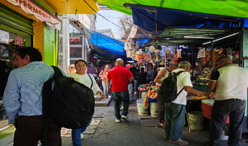 ◀ Las calles aledañas a las estaciones Peñón Viejo y Guelatao, de la línea A, en Iztapalapa, se han convertido en un laberinto de puestos ambulantes, mototaxis que hacen base en las vialidades, carros estacionados y basura que se acumula en las esquinas. El desorden complica el paso a los peatones. Foto e información de Mara