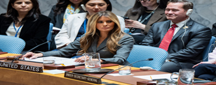 ▲ La esposa del magnate encabezó una sesión del Consejo de Seguridad sobre los niños atrapados en conflictos bélicos. Es la primera vez que el o la cónyuge de mandatarios está al frente de una reunión de ese órgano. Foto Ap. Afp