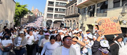 ▲ Miles de estudiantes de la Universidad Autónoma del Estado de Morelos realizaron dos marchas ayer por las calles de Cuernavaca hasta llegar al palacio de gobierno, donde repudiaron el feminicidio de su compañera y pidieron que se refuerce la seguridad dentro y fuera del campus. Foto e información de Rubicela Morelos, corresponsal
