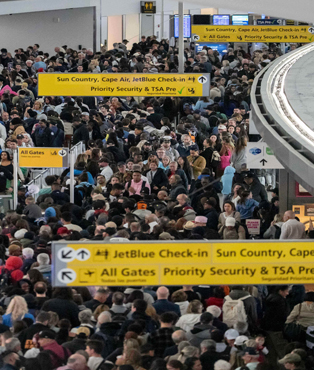 ▲ Agentes migratorios armados se presentaron en algunas de las terminales más concurridas de Estados Unidos para dar apoyo al personal de la Administración de Seguridad en el Transporte, durante el cierre parcial del gobierno que ha afectado vuelos en todo el país. A diferencia de las redadas, los uniformados llevaban el rostro descubierto. Imagen del aeropuerto John F. Kennedy, en Nueva York. Foto e información de Ap