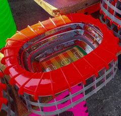 ▲ Mientras autoridades entregaron ayer obras de rehabilitación de espacios aledaños al recinto de Santa Úrsula, que será reinaugurado el sábado con el partido México-Portugal, comerciantes del centro de la capital ya venden recipientes para servir palomitas con la forma del estadio. Foto Jorge Á. Pablo García /