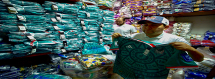 ▲ Mientras los estadios de Monterrey y Guadalajara pasaron la primera prueba con los partidos de repechaje en los que Bolivia y Jamaica avanzaron al derrotar a Surinam y Nueva Caledonia, respectivamente, en Tepito fueron decomisadas 25 toneladas de mercancía con valor de 15.3 millones de pesos, incluidas playeras de reconocidas marcas, pero apócrifas. Foto Alfredo Domínguez. Kevin Ruiz y Vianney Carrera y Juan Carlos G. Partida,