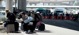 ▲◀ Venta de productos en el Centro Histórico, bloqueo en la autopista México-Cuernavaca ayer y el estadio Azteca. Fotos Germán Canseco, Alfredo Domínguez y